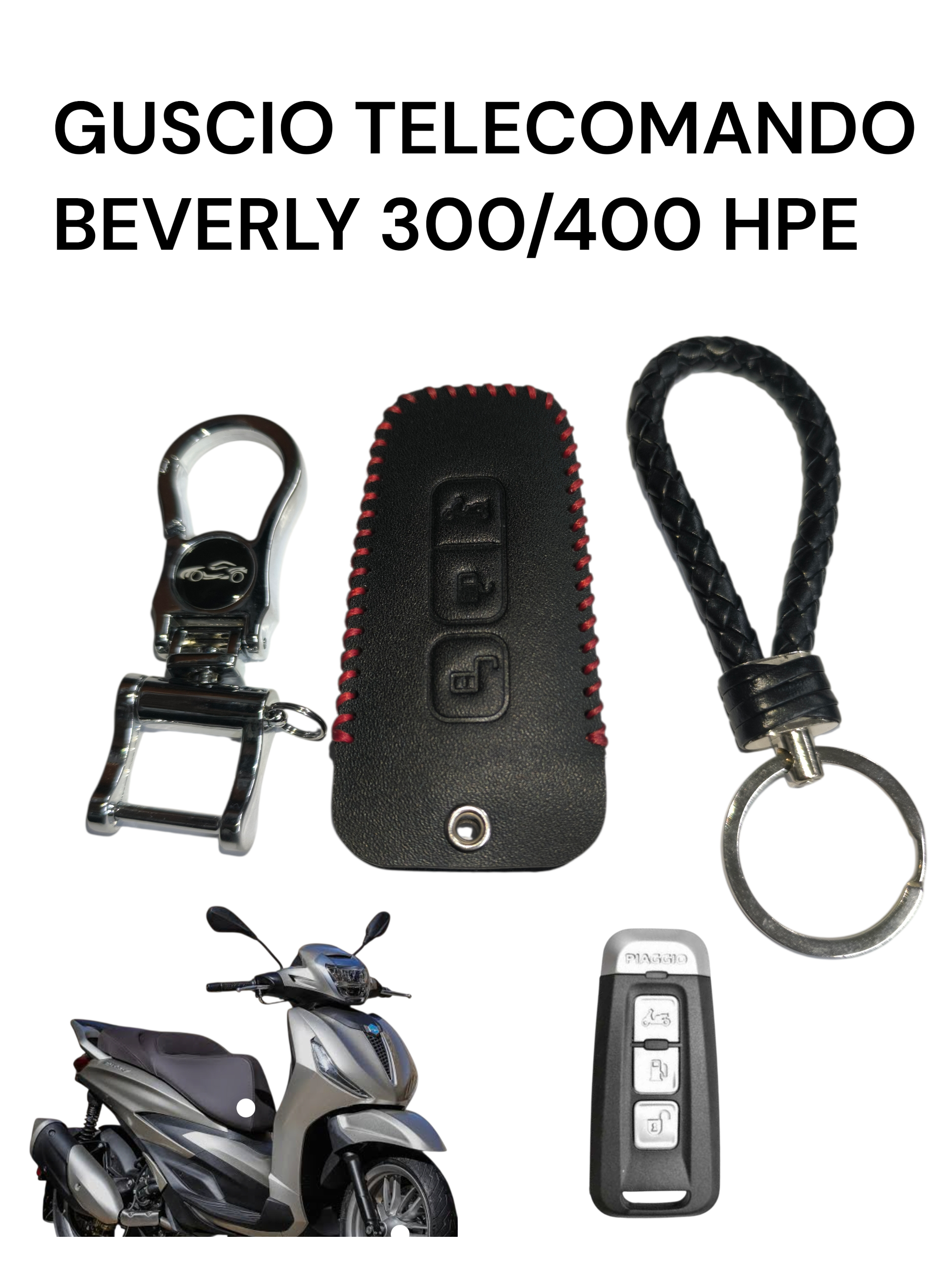 Proteggi il telecomando della tua Piaggio Beverly con eleganza e stile. Questo guscio in vera pelle con cuciture rosse è la scelta perfetta per chi cerca qualità superiore e design raffinato.